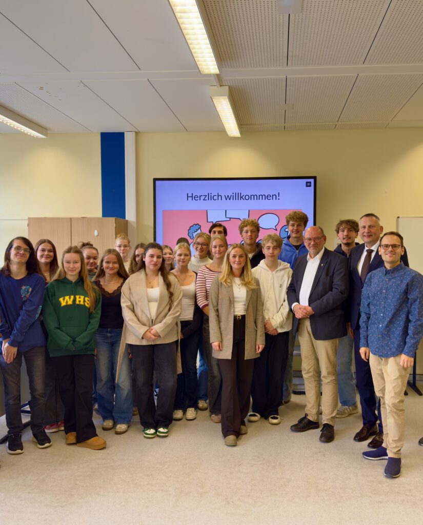 Am Montag, den 29. September 2025, durfte das Anne-Frank-Gymnasium Werne einen besonderen Gast begrüßen: Rainer Schmeltzer, 1. Vizepräsident des Landtages Nordrhein-Westfalen, nahm sich einen ganzen Vormittag Zeit, um unsere Schule im Alltag kennenzulernen. Bereits im vergangenen Schuljahr hatte Schmeltzer an der Abiturentlassfeier des AFG teilgenommen. Damals äußerte er den Wunsch, die Schule nicht nur im