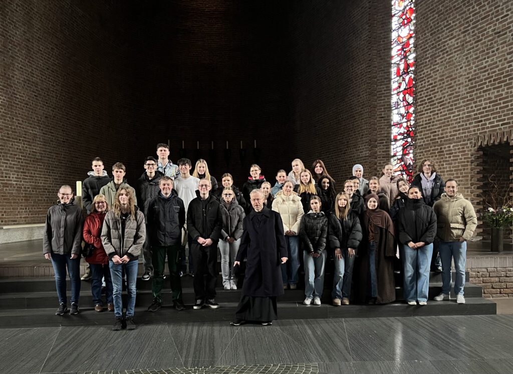 Statt das Wochenende nach den Zeugnissen nur mit Erholung oder vorgezogenen Karnevalsfeiern zu verbringen, hatten sich 32 Schülerinnen und Schüler der Jahrgangstufe 10 dazu entschlossen, zusammen mit Frau Berendes, Frau Kammann, Frau Lehmann und Herrn Weseloh ein Wochenende in der Benediktinerabtei Königsmünster in Meschede zu verbringen. Dort erfuhren sie von den zwei Mönchen Bruder Benedikt