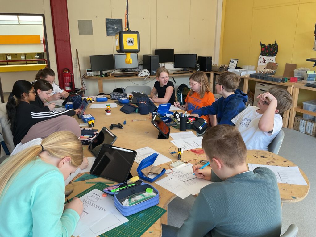 In unserer Nachwuchs-AG im Maker Space sind die Fünftklässlerinnen und Fünftklässler mit großer Begeisterung in die Welt des Tüftelns und Konstruierens gestartet. In der ersten Sitzung Anfang März haben sie sich grundlegendes Wissen über einfache Stromkreise sowie den sicheren Umgang mit Werkzeugen angeeignet. Mit viel Kreativität entstanden bereits erste Skizzen fantasievoller Bürsten-Tiere. Diese werden die