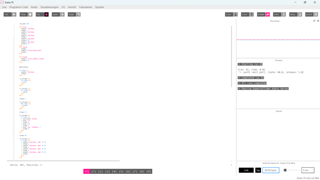 Yannis Laumann (10b) hat im Informatikunterricht ein eigenes Lied mit Hilfe des Open-Source-Programms Sonic Pi programmiert. Hier gibt er uns einen Einblick in sein Projekt! Die Idee Meine erste Idee war, ein Spiel mit Python zu programmieren, weil ich es sehr spannend fand. In dem Umfang und der Qualität wie ich es mir vorgestellt habe,