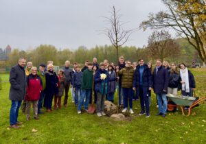 Die Arbeit zum Thema BNE am AFG sorgte auch nach der Projektwoche für Begeisterung: so spendete die Bürgerinitiative Nordlippestraße im November 2024 eine Sommerlinde für den Schulhof, welche bei einer gemeinsamen Feier mit der Umwelt-AG eingepflanzt wurde.