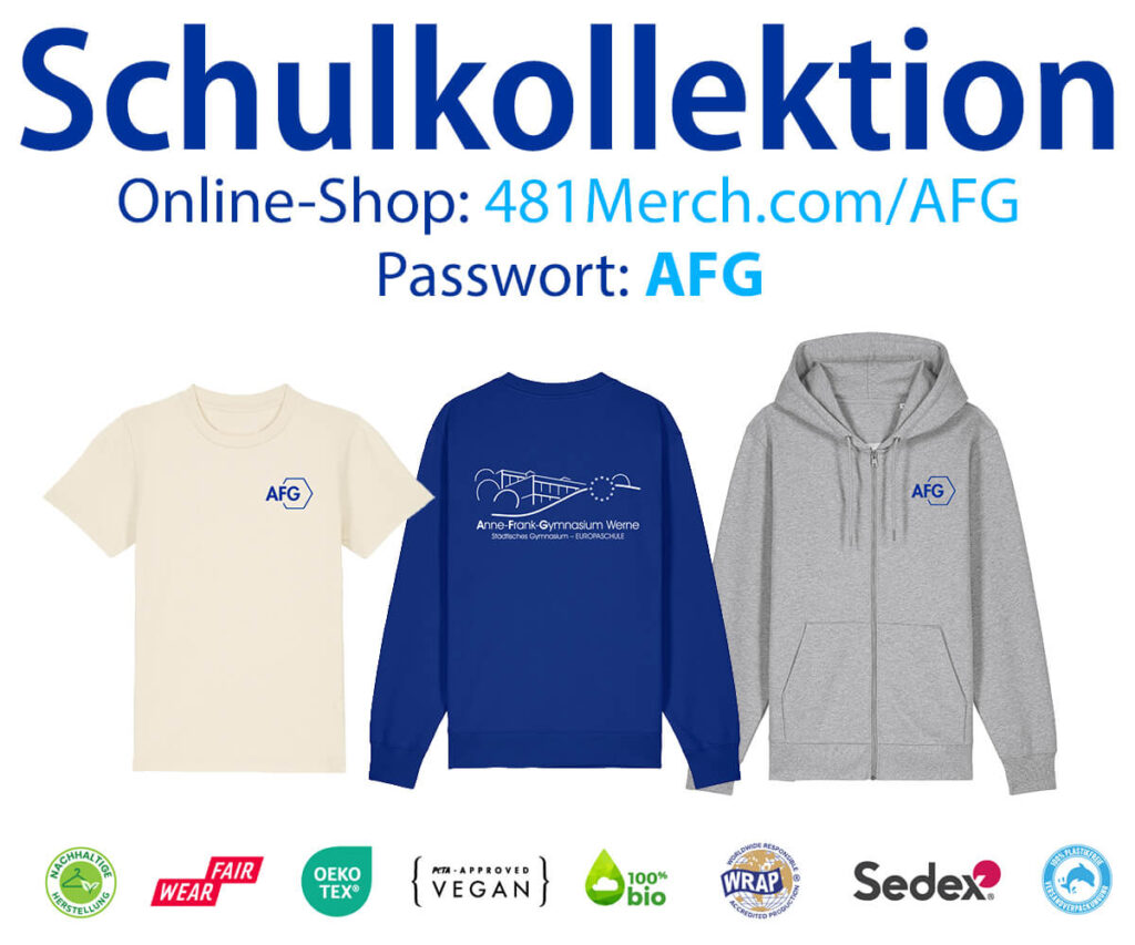 Das Kompetenzteam PR&CI wurde im Schuljahr 2021-22 gegründet und ist über die Adresse homepage@welten.afg-werne.de erreichbar. Das Team kümmert sich zum einen um die Veröffentlichung aktueller Berichte aus dem Schulleben (Public Relations, PR) und zum anderen um die Gestaltung und Verwendung eines einheitlichen Designs (Corporate Identity, CI) an unserer Schule.