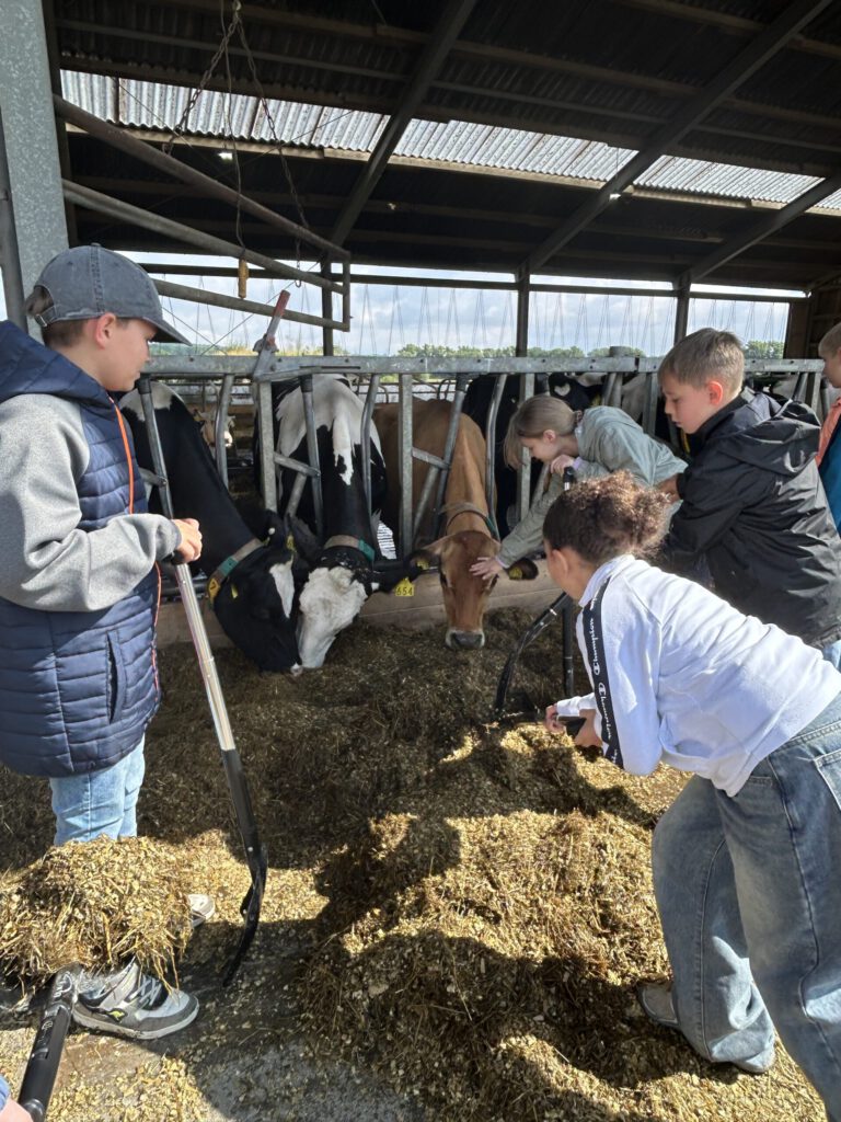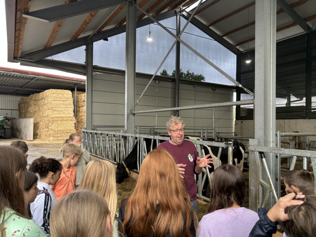 Auf dem Hof erwartete die Kinder ein abwechslungsreiches Programm rund um die moderne Milchviehhaltung. Besonders beeindruckend war die Beobachtung des Melkroboters, der völlig automatisiert die Kühe melkt – ein faszinierender Einblick in den technischen Fortschritt der Landwirtschaft. Auch das Füttern der Tiere mit Futter direkt aus dem Silo war ein Erlebnis, das den Kindern zeigte, wie viel Planung und Arbeit hinter der Versorgung der Tiere steckt.