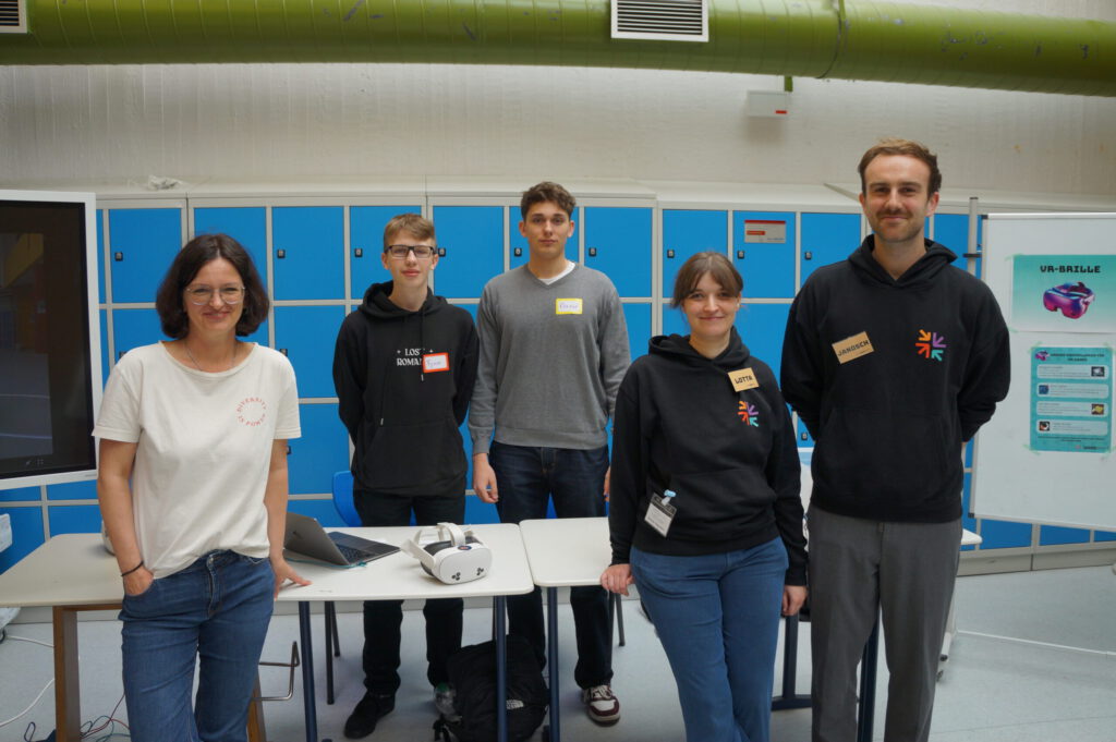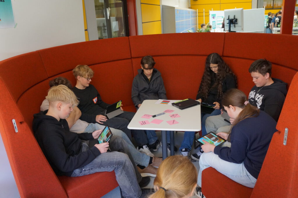 Für den Bereich Gaming wurden zwei kompetetive Spiele angeboten und ausgiebig von den Schülerinnen und Schülern getestet. An der Switch konnten bis zu vier Personen im Spiel Mariokart gegeneinander antreten, um anschließend das Spiel zu beurteilen. Das hat Alexandra (8a) besonders gut gefallen: „Das ist ein gutes Spiel, weil es darum geht dark patterns zu vermeiden. Außerdem stärkt es den Teamgeist, weil man mit Freunden oder Familie zusammen spielt.“ Alex (ebenfalls 8a) war dagegen von dem Spiel Lovers in a dangerous spacetime begeistert: „Das ist sehr gut, wir haben Vieles dazu gelernt!“