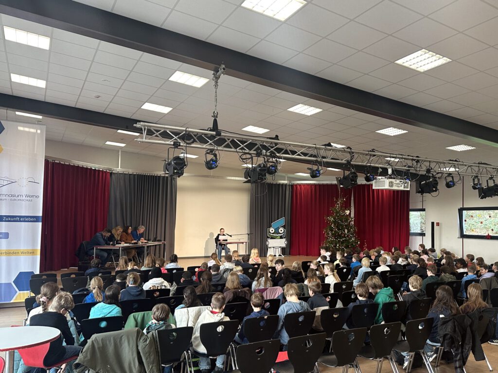 Am Mittwoch, den 11. Dezember, fand unser alljährlicher Lesewettbewerb der 6. Klassen statt. Zunächst wurden die Klassensiegerinnen und -sieger aus allen vier 6. Klassen ermittelt. Diese traten anschließend jahrgangsübergreifend in der Mensa gegeneinander an.