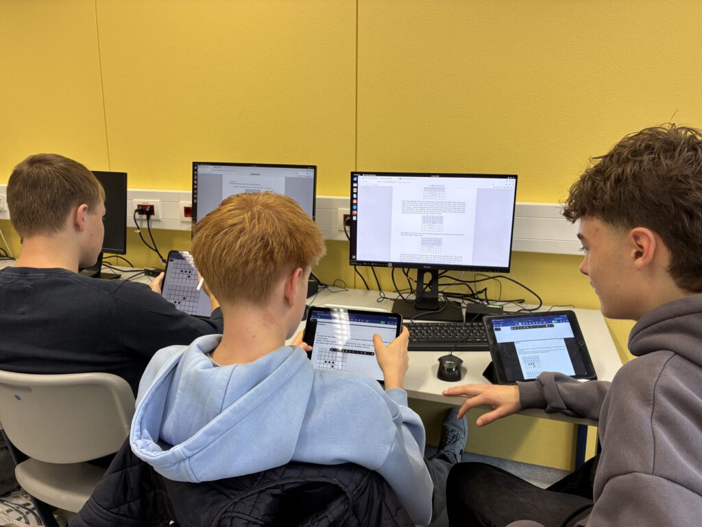 Die beiden Mathematik-Leistungskurse der Q1 unter der Leitung von Frau Kauba und Frau Krickau nahmen am Wettbewerb „macht mathe“ teil und widmeten sich einen ganzen Tag lang anspruchsvollen, realitätsnahen Problemstellungen. Bis in den Nachmittag hinein wurde in konzentrierter Gruppenarbeit gerechnet, diskutiert und modelliert – eine beeindruckende Leistung, die viel Ausdauer und echtes Engagement erforderte.