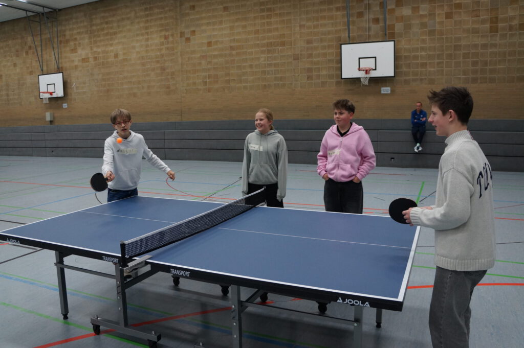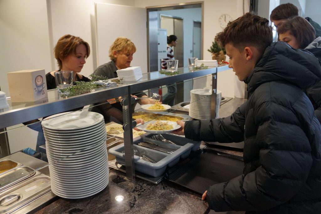 Wer nach dem Rundgang noch nicht genug Bewegung bekommen hatte, konnte sich in der Sporthalle bei Ballspielen noch einmal richtig austoben. Die meisten Gäste bevorzugten jedoch den traditionellen Abschluss in der Mensa des AFG mit einem gemeinsamen Mittagessen des Caterers ConGusto. Auch der Schulleiter war wieder dabei und freute sich über den rundum gelungenen Tag: durch die gute gemeinsame Planung sei trotz der hohen Besucheranzahl alles entspannt und reibungslos verlaufen.