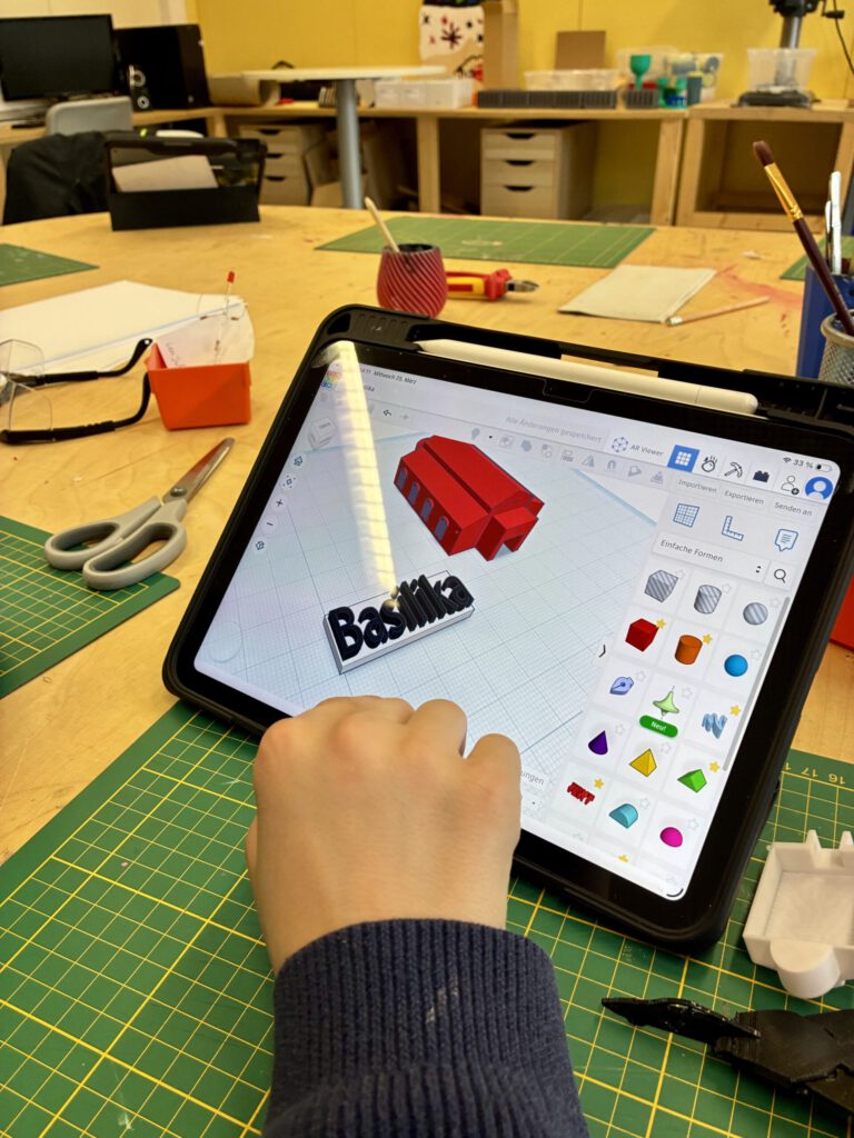 Im Maker Space des AFG gestalteten die drei kreativen Köpfe schließlich aus eigener Initiative heraus 3D‑Modelle einer Hauskirche, einer Basilika und der Kirche St. Christophorus.