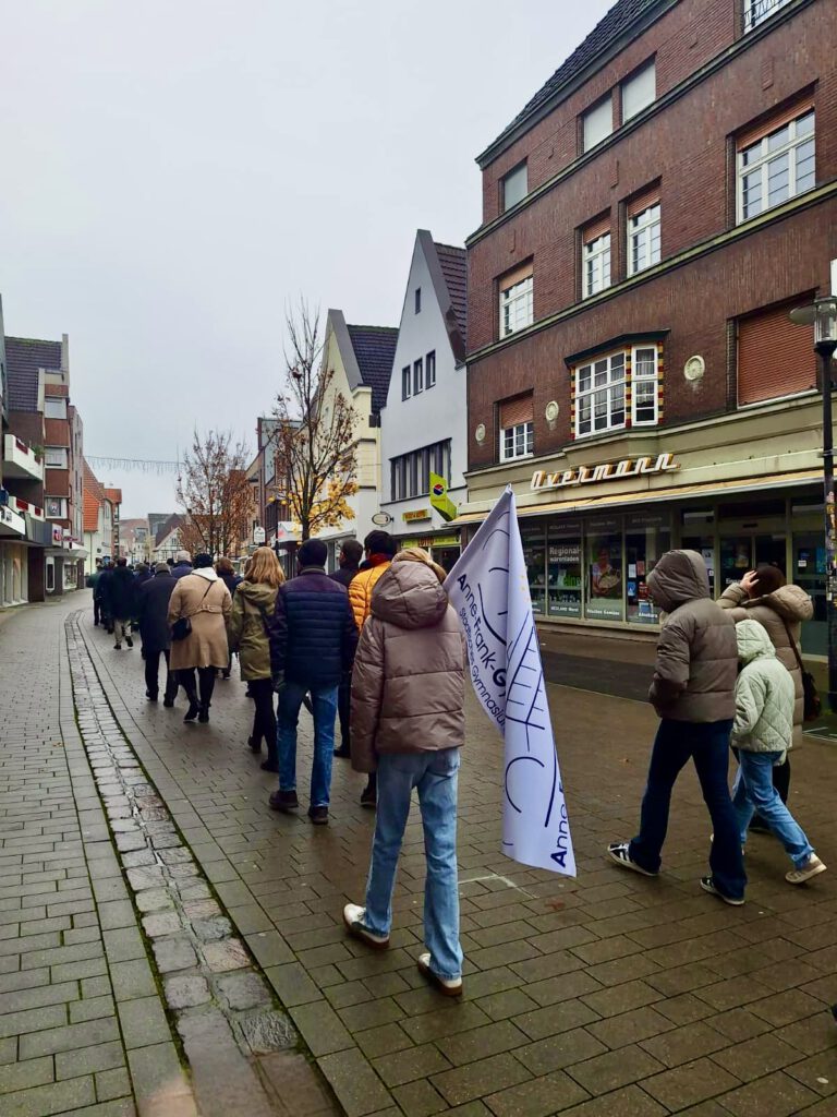 Am 17. November beteiligten sich Schülerinnen der WEREmember-AG des Anne-Frank-Gymnasiums an der städtischen Gedenkfeier zum Volkstrauertag in der Werner Innenstadt. Gemeinsam mit Vertreterinnen und Vertretern der Stadt Werne, örtlichen Vereinen sowie zahlreichen Bürgerinnen und Bürgern setzten sie ein sichtbares Zeichen gegen Krieg, Gewalt und Hass. Trotz regnerischem und kaltem Novemberwetter begleiteten die Schülerinnen den Trauerzug vom historischen […]